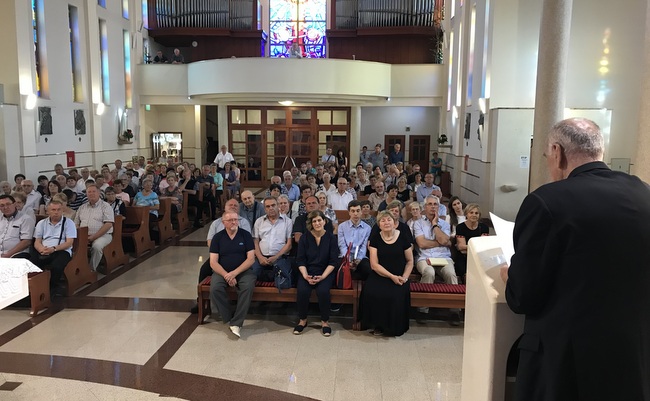 Nakon svete mise slijedilo je predstavljanje biskupove knjige „Nada koja ne postiđuje“. Uvodnu riječ održao je preč. Cindori istaknuvši veliku radost i privilegiju što župa koja ponosno nosi titul bl. Aojzija Stepinca ima priliku čuti riječi jednog od najboljih poznavatelja Kardinalova života. „Hvala Vam što ustrajno i odvažno, detaljno i strastveno pišete i govorite o istinu o našem voljenom Blaženiku. Dok molimo za njegovu kanonizaciju želimo što bolje upoznati Stepinčev život“, rekao je župnik Cindori.