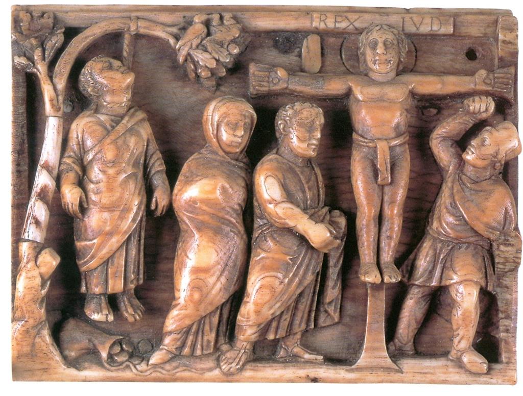 Bjelokosni reljef, oko 400. godine s prikazom Raspeća i Judina samoubojstva, London