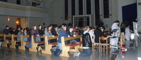 U utorak, 25. siječnja 2011. u 21 sat u župi B. D. Marije Majke Crkve i sv. Maksimilijana Kolbea održano je prvo klanjanje pred Presvetim Oltarskim Sakramentom u okviru Duhovne priprave za pohod pape Benedikta XVI. Hrvatskoj, u organizaciji Hrvatske dehonijanske mladeži.