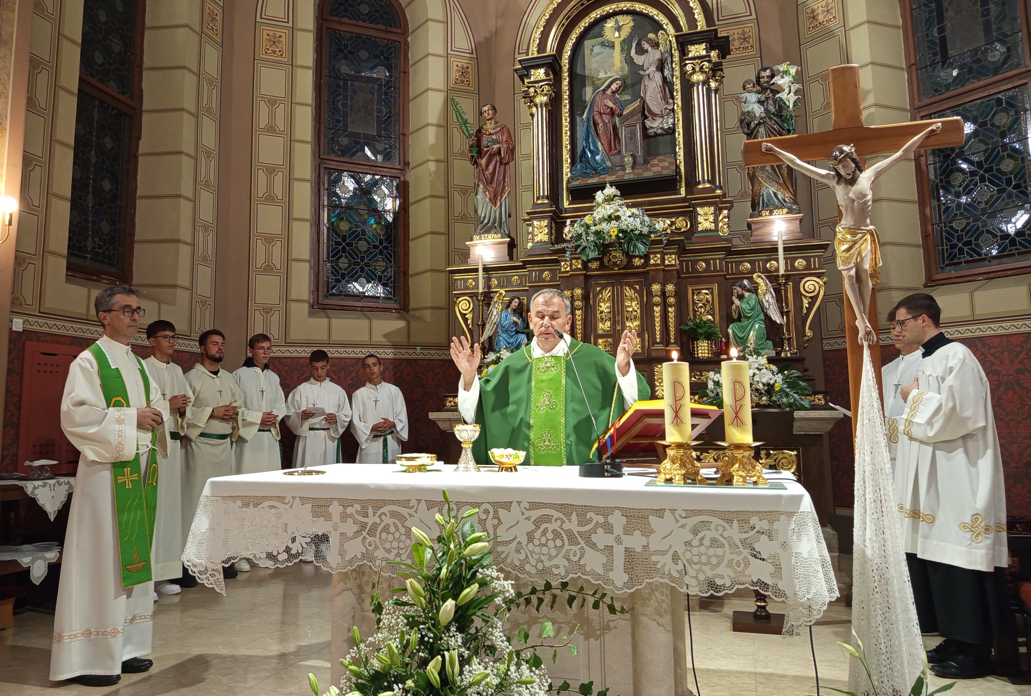 Misu na staroslavenskom predvodio je gvardijan Samostana sv. Franje Ksaverskog u Zagrebu fra Zvonimir Brusač. Na misi su pjevali Gradski zbor Franje pl. Lučića, župni zbor Župe Navještenja Blažene Djevice Marije i Pjevački zbor hrvatskih učitelja.