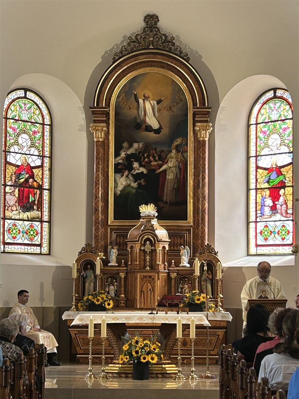 Nakon predavanja i rasprave, svetu misu predslavio je p. Robert Petkovšek, vizitator Slovenske provincije Misijske družbe i profesor na Teološkom fakultetu Sveučilišta u Ljubljani. U homiliji je istaknuo da u svijetu danas djeluje 180 različitih grana Vinkovske obitelji s više od četiri milijuna članova u 167 zemalja. Prikazavši u kratkim crtama život svetog Vinka, osvrnuo se na duhovni vid njegova poslanja.