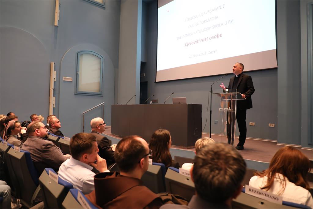 Stručno usavršavanje djelatnika katoličkih škola o temi "Cjeloviti rast osobe" održano je u subotu 22. ožujka 2025. u Nadbiskupijskom pastoralnom institutu u Zagrebu, u organizaciji Nacionalnog ureda za katoličke škole Hrvatske biskupske konferencije (HBK) u suradnji s Agencijom za odgoj i obrazovanje. Domaćin stručnog skupa bilo je povjerenstvo Zagrebačke nadbiskupije za katoličke škole i predškolske ustanove u suradnji sa srednjim i osnovnim školama u Zagrebačkoj nadbiskupiji (Prva katolička osnovna škola u Gradu Zagrebu, OŠ Dominik Savio, OŠ Ružičnjak i OŠ Lotrščak; Nadbiskupska klasična gimnazija s pravom javnosti i Ženska opća gimnazija sestara milosrdnica s pravom javnosti). Na skupu je sudjelovalo više od 300 djelatnika katoličkih škola iz Rijeke, Pazina, Zagreba, Varaždina, Siska, Virovitice, Novske, Požege, Slavonskog Broda i Osijeka.