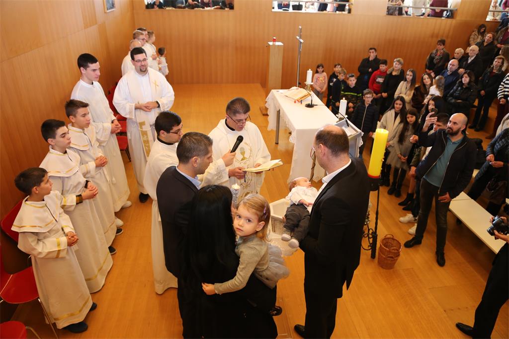 U nedjelju 12. siječnja na blagdan Krštenja Gospodinova na euharistijskome je slavlju u 11 sati u župi bl. Ivana Merza mons. Tomislav Subotičanec, generalni vikar Zagrebačke nadbiskupije, moderator Nadbiskupskog duhovnog stola, kanonik Prvostolnog kaptola zagrebačkog kao izaslanik nadbiskupa kardinala Josipa Bozanića, uz koncelebraciju upravitelja župe vlč. Marka Čolaka, krstio je Ivana, peto dijete Marije i Davora Grgića. Roditelji Grgić, uz Ivana, imaju Mateu (17 god), Josipa (15 god) te Emu (9 god), Anu (2 god). Na početku slavlja preč. Subotičanec, istaknuvši kako je na blagdan Krštenja Gospodinova prikladno slaviti krštenje novoga člana Crkve i novoga člana Božjega naroda, pozvao je cijelu župnu zajednicu da moli za novoga člana Župe.