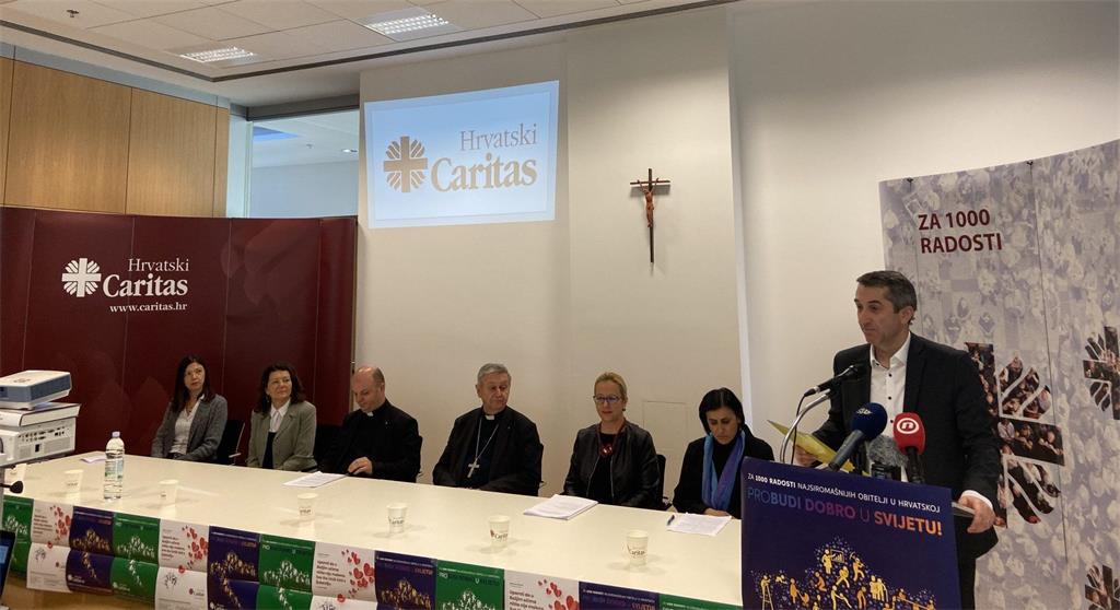 Hrvatski Caritas predstavio je na konferenciji za novinare u srijedu, 11. prosinca, u zgradi Hrvatske biskupske konferencije u Zagrebu nacionalni program „Za 1000 radosti – probudi dobro u svijetu“ te najavio 18 godinu za redom tradicionalnu humanitarnu prodaju božićnih drvaca na Trgu bana Jelačića u Zagrebu koja će se održati u subotu 14. prosinca kako bi se prikupila pomoć za siromašne obitelji diljem Hrvatske.