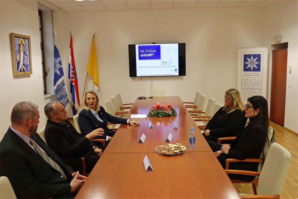 Nakon predavanja Nj.E. Rayes susrela se s rektorom prof. dr. sc. Željkom Tanjićem, prorektorom za nastavu prof. dr. sc. Rokom Mišetićem i voditeljicom Ureda za odnose s javnošću dr. sc. Suzanom Obrovac Lipar.