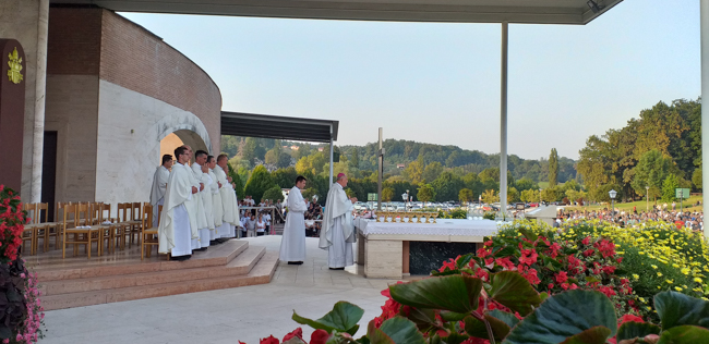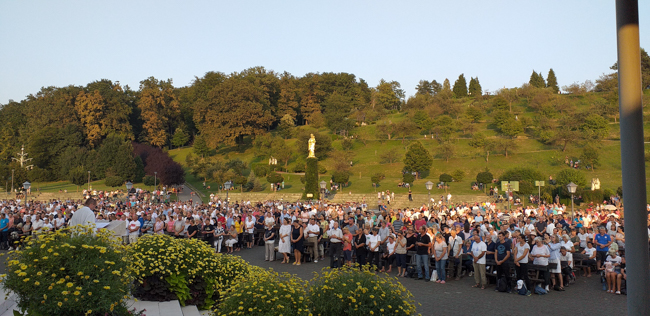 Crkva na otvorenom bila je ispunjena mnoštvom vjernika, onih koji su pristigli pješice kao i onih koji su automobilima došli kako bi sa svojim obiteljima sudjelovali na euharistiji koju je, u zajedništvu sa svećenicima velikogoričko-odranskog dekanata, u 18 sati predvodio krčki biskup Ivica Petanjak koji je u propovijed, osvrćući se na nedjeljno evanđelje, naglasio kako se hodočasnički put iz Velike Gorice može također gledati u svjetlu evanđelja. „Neki od vas sa župnikom Josipom Frkinom dali ste zavjet da ćete hodočastiti. Time što ste došli ovdje, a vidio sam koliko mladih je među vama došlo, pokazali ste da je to vaš odabir, vaše mjesto. (…) Izabrali ste mjesto koje vam nitko ne može uzeti, po kojem ćete se spasiti. Molite se da ustrajete biti na ovom mjestu koje ste odabrali. Neka ni jedan put ne bude privlačniji od ovoga - biti na putu Isusa Krista i Blažene Djevice Marije jer je to jedini put koji daje život ovdje i osigurava Vječnost“, zaključio je propovijed biskup Petanjak. Nakon euharistije slijedila je oproštajna procesija oko oltara. Hodočasnici su, uz pjesmu, još jednom zahvalili za darovane im milosti zajedno s dobrovoljcima – redarima koji su se, uz službenike Policije, Hrvatskih cesta i autocesta te vjernike zadužene za medicinsku skrb, uključili u organizaciju hodočašća i brinuli oko njegove sigurnosti.