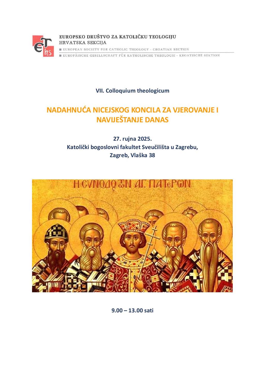 VII. Colloquium theologicum na temu “Nadahnuća Nicejskog koncila za Vjerovanje i naviještanje danas” održat će se 27. rujna 2025. godine na Katoličkom bogoslovnom fakultetu Sveučilišta u Zagrebu.