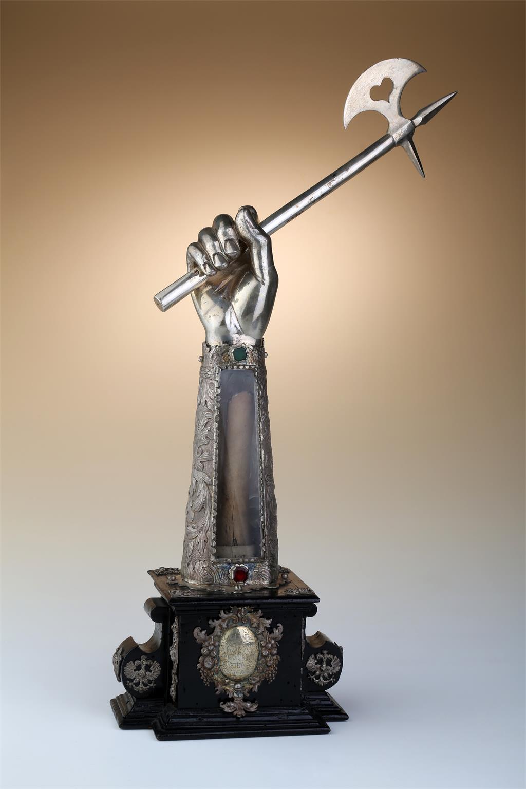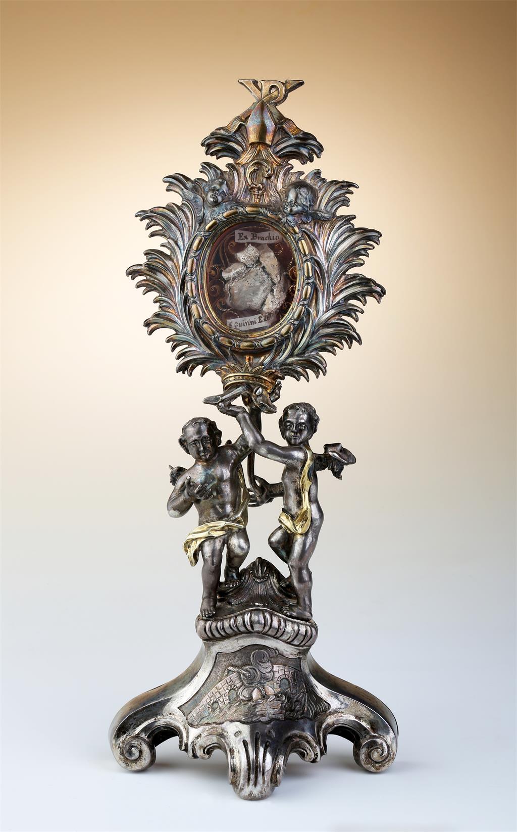 Zanimljivo je kako je relikvijar došao u Zagreb. Kako navodi Ivandija: "Glede te relikvije, izdao je biskup Aleksandar Mikulić povelju u kojoj veli da ju (misli se na relikviju humeral) je dobio od kardinala Vincenza Orsinija, beneventanskog biskupa, kasnije pape Benedikta XIII., i to zagovorom kardinala Kolonića, nadbiskupa ostrogonskog. (...) Određuje da se ta relikvija imade izložiti na blagdan sv. Augustina. Svjedodžba autentičnosti kardinala Orsinija nalazi se prepisana u knjizi vizite kanoničke 1792."
