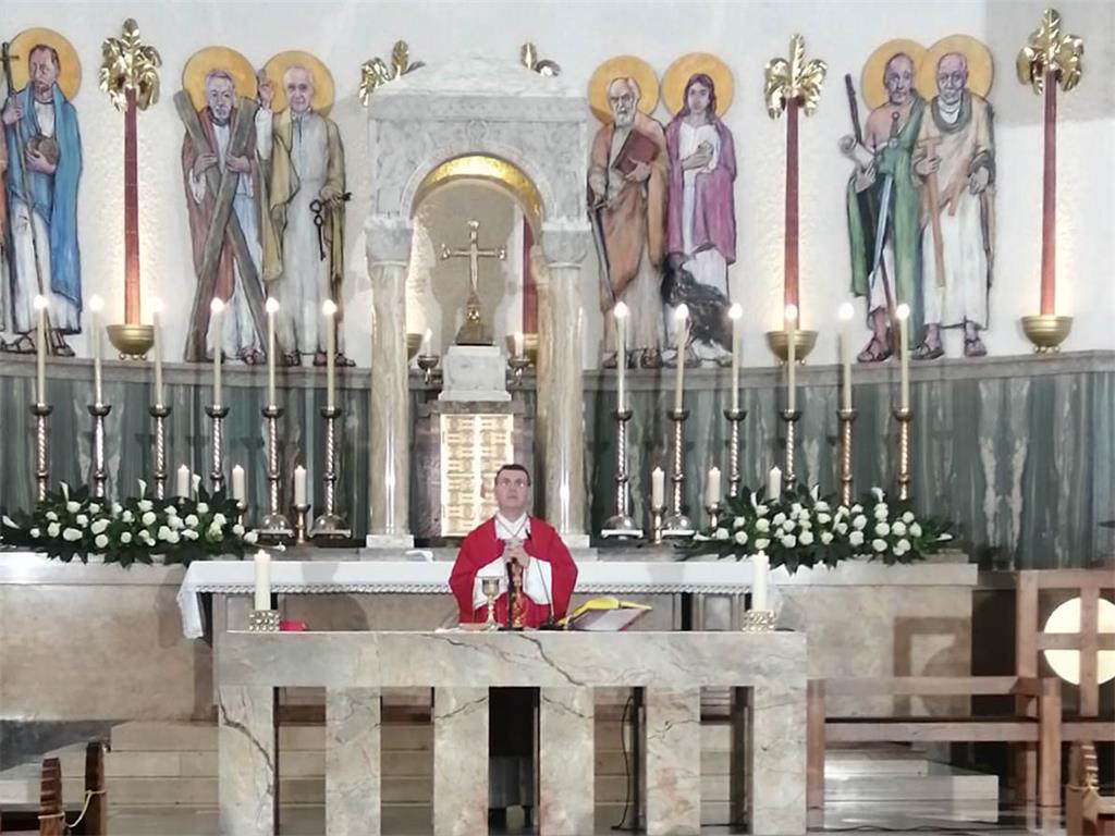 Zagrebački pomoćni biskup Ivan Šaško predslavio je u nedjelju 31. svibnja 2020. euharistijsko slavlje Pedesetnice (Duhova) u Župnoj crkvi sv. Blaža u Zagrebu. Koncelebrirali su župnik mons. Zlatko Koren, župnik