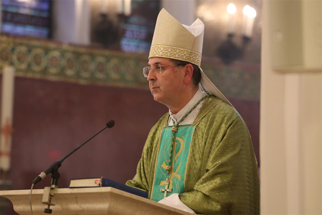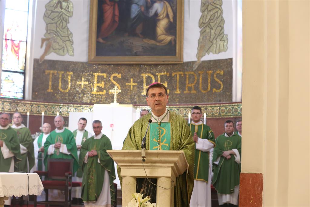 U homiliji je biskup Šaško, osvrčući se na, kako je rekao, dvije kušnje: pandemiju koronavirusa i potres, govorio o molitvi Oče naš koju je sam Isus poučio moliti svoje učenike nakon što su ga oni tražili da ih nauči kako moliti (usp. Mt 6, 7-15).