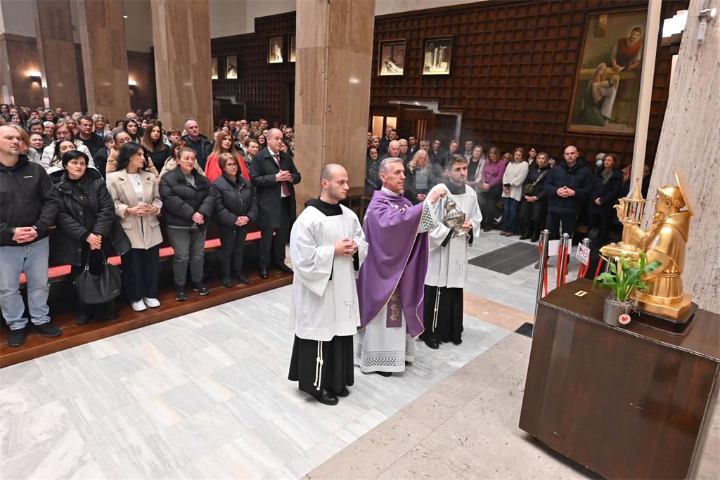 Sljedećega utorka, 24. ožujka, misno slavlje predslavit će fra Ivan Marija Tomić. Pobožnost započinje u 18 sati svečanim izlaganjem relikvijara, u 18.20 slijede pjevana krunica i Večernja u čast svecu te sveta misa, nakon koje se pjevaju litanije i slijedi štovanje relikvija ispred relikvijara u kojem se nalazi svečeva podlaktična kost. Prijenos svete mise od 19 sati svakoga utorka omogućuju Laudato televizija i Radio Marija.