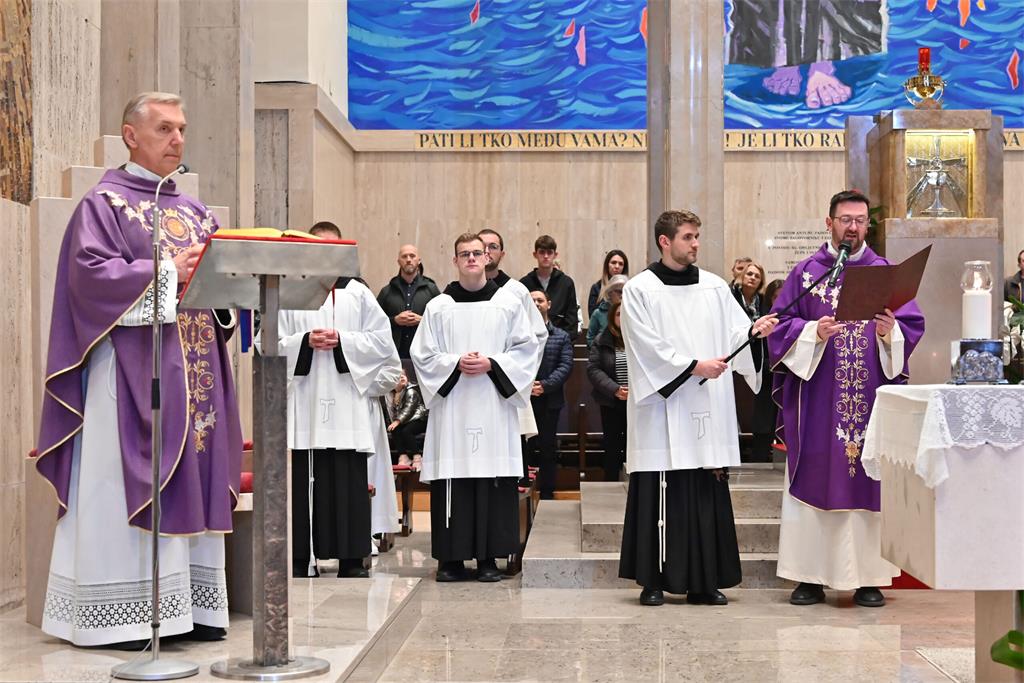 Na početku euharistijskog slavlja okupljene vjernike u bazilici, kao i one povezane digitalnim putem, pozdravio je fra Ivan Marija Lotar, rektor bazilike i župnik Župe sv. Antuna Padovanskog na Svetom Duhu.