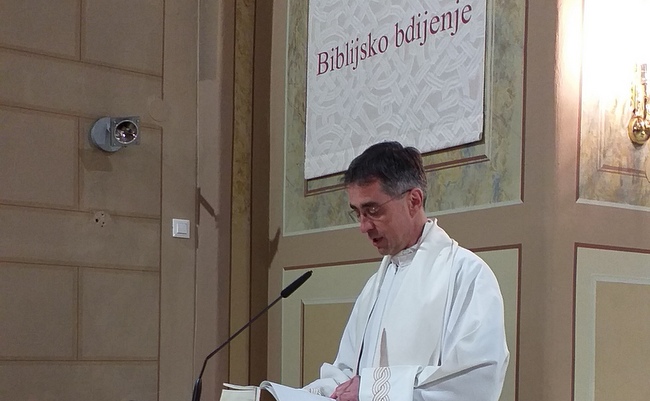 “Pa sigurno ako su napisali u tim dokumentima već 2008. godine da je to važno. Vi znate da odluka Svete Stolice i rimskog Pape polako dozrijeva. Svaki doprinos u tom pravcu je vrlo važan pa i ovaj doprinos vaše župe Navještenja BDM također je važan. Sam Bog zna koliko je on utjecao na odluku pape Franje, ali sve to pokazuje kako svi mi kršćani moramo otkriti važnost Biblije u naše vrijeme. Biblija nas ujedinjuje, imamo zajednički nazivnik sa svim kršćanima, a također i sa Židovima koji su naša starija braća. S njima dijelimo knjige Staroga Zavjeta. To je vrlo važno za ekumenski dijalog naše crkve s drugim kršćanskim crkvama i zajednicama, ali također i sa židovskom zajednicom. Kad su organizirali ovo Biblijsko bdjenje u Rimu 2008 godine, onda su čitali čak i neki muslimani, zatim Židovi, ali bilo je i onih koji su ljudi kulture i nisu izrazito vjernici. Jer Biblija je knjiga naše zapadnoeuropske kulture i bez Biblije se nju ne može ni razumjeti, a ni živjeti ni cijeniti. Završimo sa svetim Jeronimom koji je rekao: 'Tko ne poznaje Bibliju, ne poznaje Isusa Krista.' Dakle, treba poznavati Bibliju da bi bolje i dublje upoznali Isusa Krista, s njime se sreli i živjeli kako on zapovijeda.”
