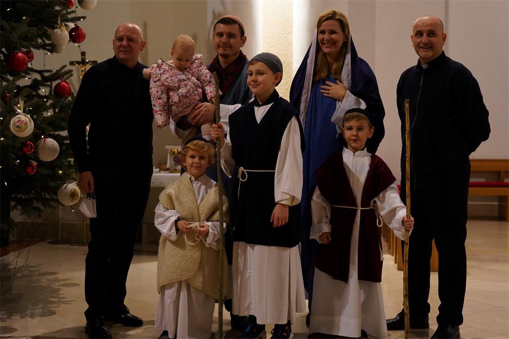 Misu je predslavio župni vikar Krunoslav Kolar. Nakon slavlja djeca su uz prigodne recitacije otkrili ljepotu Isusovog rođenja. Uz pjesmu Tiha noć Tomislav i Matea Lukačević s malom Helenom ušli su u crkvu glumeći Svetu obitelj koja traži konačište. Ljepota toga posebnog scenskog izričaja bila je u tome što su sinovi od Lukačevića Luka, Ivan i Toma bili obučeni u betlehemske pastire. Župnik Ivan je na kraju slavlja zahvalio obitelji Lukačević što je i ove godine na opipljiv način približila otajstvo Kristovog rođenja. Tomislav i Mateja do sada sa svojom djecom više puta uprizorila Svetu obitelj u poznatim zaprešićkim Živim jaslicama.