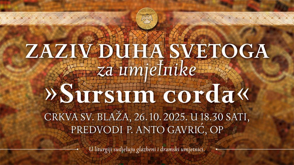 Zaziv Duha Svetoga za umjetnike „Sursum corda“ održava se petu godinu zaredom u crkvi sv. Blaža u središtu Zagreba. Nakon poslijepotresne obnove ova jedinstvena sakralna građevina, remekdjelo hrvatske moderne arhitekture, svojom ljepotom i uzvišenom jednostavnošću iznova nadahnjuje štovatelje sv. Blaža i sve posjetitelje.