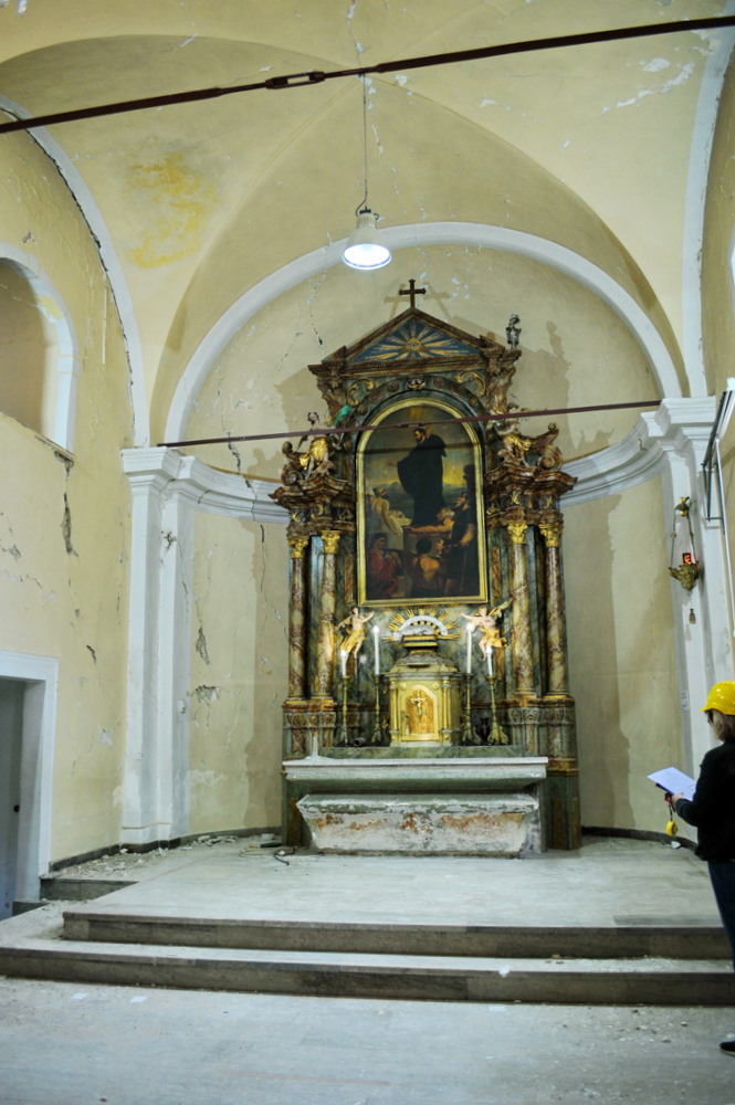 Zidovi sakristija napukli su s vanjske strane, a i unutra svod i zidovi u prizemlju imaju veće pukotine. Na emporu na katu nije bilo moguće odmah prići zbog urušenog materijala na stubištu. U unutrašnjosti crkve svodovi su oštećeni, što je vidljivo po pukotinama po sredini i u tjemenu luka. Prema prvoj procjeni statičara crkva je dobila crvenu oznaku – neuporabljivo. U slučaju novog jačeg potresa postoji mogućnost urušavanja dijelova zidanih konstrukcija.
