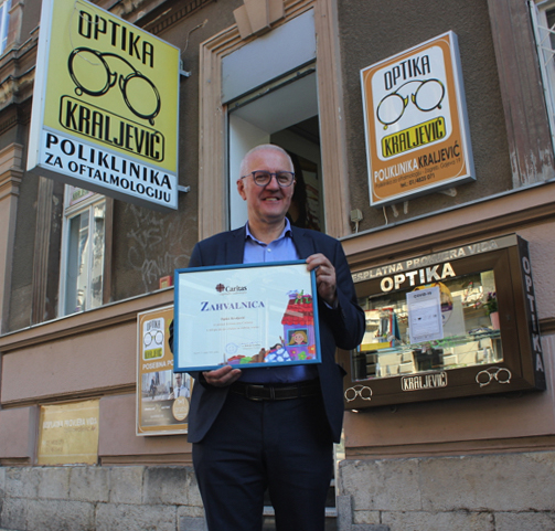 Prema evidenciji inicijatorice ove akcije Nevenke Blagojević, Caritasove zaposlenice, prva donacija Optičarskog i trgovačkog obrta »Optika Kraljević« bila je 11. studenoga 2010. godine. U nekoj od četiri optičarske radnje Branka Kraljevića, koliko ih ima u Zagrebu, Caritasovi korisnici mogli su tijekom proteklih deset godina, s posebnom potvrdom koju izdaje Caritas, besplatno provjeriti stanje vida, izraditi odgovarajuće naočalne leće i dobiti okvire za njih.