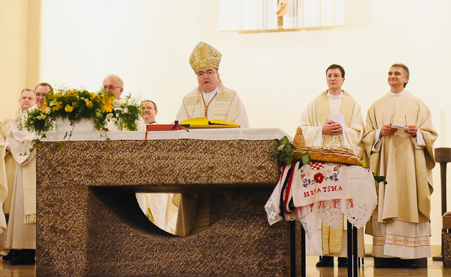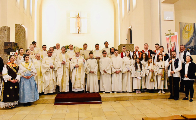 U duhu ove poruke aktualizirao je i 50. obljetnicu Hrvatskih katoličkih zajednica Aalen i Heidenheim. "Bog se predstavlja kao naš Bog. Bog je to onih vjernika koji se okupljaju u ovim katoličkim zajednicama. To je ono što u prvom redu danas slavimo - 50 godina okupljanja u Božje ime, 50 godina neprestanog slavljenja Euharistije na hrvatskom jeziku zahvaljujući velikodušnosti Katoličke Crkve u Njemačkoj. Zato smo došli ovdje da obnovimo taj spomen, memoriju što Njemu pripadamo. I taj nas Bog učvršćuje u zajedništvu i čuva nas od Zloga, a Zlo je zapravo đavao koji je majstor podjela i laži. Tamo gdje je podjela, gdje se podmeću neistine, on je na djelu. I što se manje njega spominje, to je jače njegovo djelovanje."
