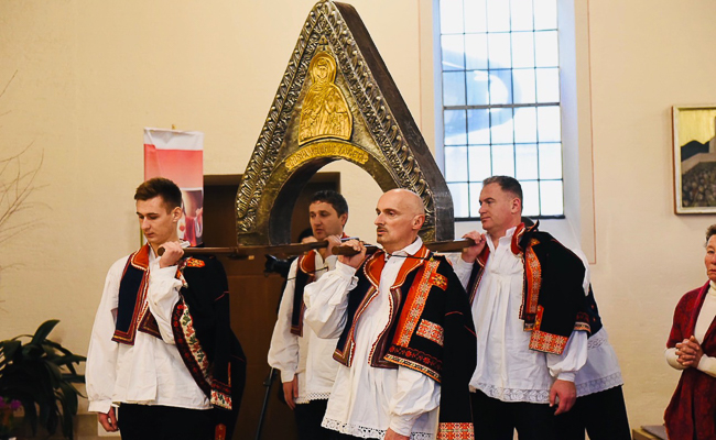 Na kraju misnoga slavlja voditelju hrvatskih katoličkih zajednica Aalen i Heidenheim vlč. Vilimu Koretiću kardinal Bozanić je zahvalio za služenje našem narodu i darovao mu medaljon s likom sv. Ivana Pavla II. što ga je Zagrebačka nadbiskupija izdala prigodom njegove kanonizacije. Pritom je podsjetio: "Mi vjernici Hrvatske znamo što je Ivan Pavao II. značio u teška vremena za naš narod i Crkvu, ali ne samo za nas, nego i za Europu. Ovih dana smo se sjetili 30. obljetnice pada Berlinskog zida. Sigurno je da je i on tome dao svoj doprinos."