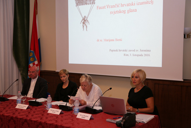 Zatim je dr. sc. Marijana Borić, znanstvena suradnica u Zavodu za povijest i filozofiju Hrvatske akademije znanosti i umjetnosti, Odsjek za povijest prirodnih i matematičkih znanosti u Zagrebu, govorila na temu „Faust Vrančić hrvatski konstruktor svjetskog glasa povodom 400. obljetnice objavljivanja djela Machinae novae“. Vrančića je prikazala kao primjer uspješnoga ostvarenja renesansnoga ideala univerzalno obrazovanoga čovjeka. S obzirom na Vrančićevu metodologiju upozorila je da u to doba fizika i tehnika još nisu bile toliko matematizirane kao što će biti od XVII. stoljeća pa do naših dana. Stoga je Vrančić kao i svi drugi autori sličnih djela toga doba, mogao svoje tehničke konstrukcije samo tumačiti i opisivati fenomenološki. Nakon kratkoga pregleda Vrančićevih glavnih životnih postaja prikazala je neke važnije od sveukupno 56 uređaja i tehničkih konstrukcija iz djela „Machinae novae“. Ti nacrti svjedoče ne samo o Vrančićevoj kreativnosti – katkada je naime i anticipirao budući razvoj tehnike – nego i o njegovom čovjekoljublju jer mahom sve konstrukcije žele doprinijeti unaprjeđivanju ljudskoga života, zaključila je dr. Borić.