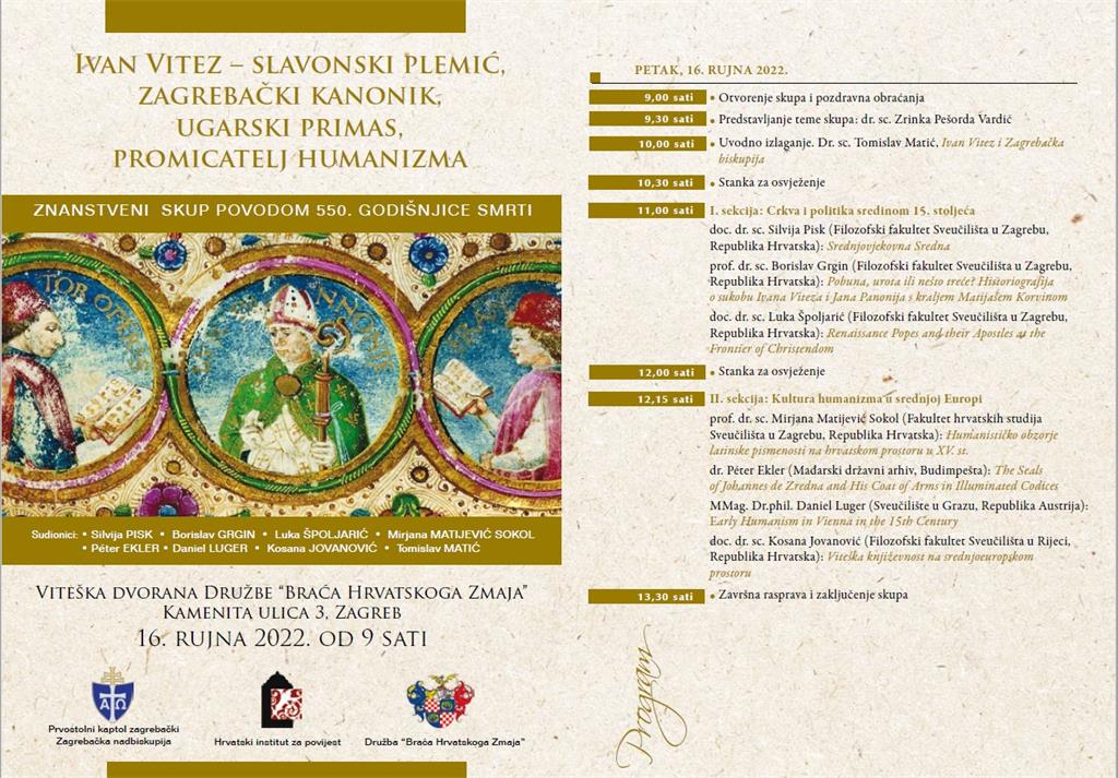 Povodom pet i pol stoljeća od smrti Ivana Viteza od Sredne, Hrvatski institut za povijest organizira znanstveni skup o ovom velikom čovjeku, s pokroviteljstvom Prvostolnog kaptola zagrebačkog. Skup će se održati u Zagrebu, u Viteškoj dvorani Društva "Braća Hrvatskoga Zmaja", Kamenita ulica 3, u petak, 16. rujna 2022. godine s početkom u 9 sati. Izlaganja će održati stručnjaci iz Hrvatske, Mađarske i Austrije.