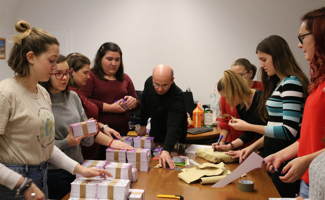 Pripreme za distribuciju sličica po župama odradili su volonteri okupljeni oko Ureda za pastoral mladih Zagrebačke nadbiskupije.