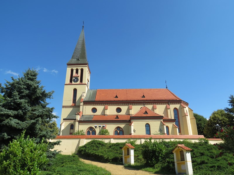Župna crkva na istom mjestu postoji od srednjeg vijeka. Stara gotička crkva stradala je u potresima 1502. godine i 1690. godine te je početkom 18. stoljeća obnovljena u baroknom stilu. Ta je crkva stradala u potresu 1880. godine te je 1885. i 1886. godine izgrađena današnja crkva. Nakon uređenja i dovršenja crkvu je 13. listopada 1901. godine posvetio zagrebački biskup Juraj Posilović. Posljednji put je obnavljana izvana 2016. i 2017. godine. U potresu 22. ožujka 2020. godine teško su oštećene župna crkva, župna kuća i kapela Uzvišenja Svetog Križa na Velikom Vrhu. Liturgijska slavlja održavaju se u montažnom objektu podignutom u blizini crkve.