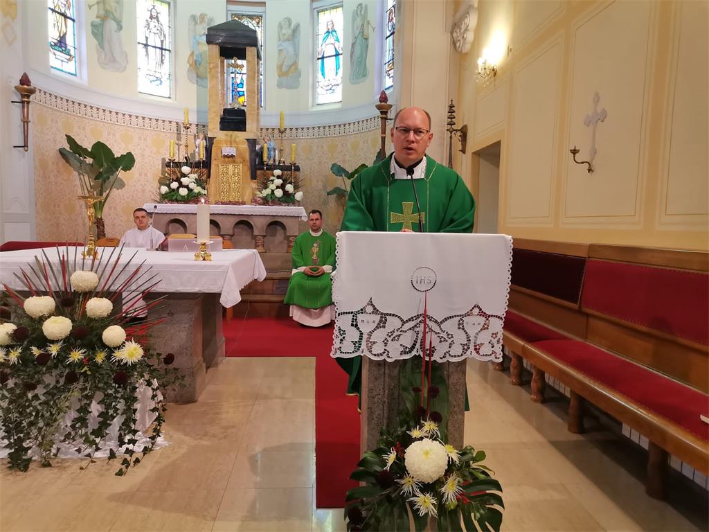 Misno slavlje je predvodio preč. Dubravko Škrlin Hren, a suslavio je domaći župnik vlč. Ivan Vučak. Pozdravivši domaće i svoje župljane, preč. Škrlin Hren u propovjedi je rekao da je lijepo biti u euharistijskom zajedništvu na mjestu gdje kroz duhovnu blizinu sjaji lik bl. Alojzija Stepinac. „Nedjeljna misa jest mjesto susreta između Boga i čovjeka. Čovjek se ne može susresti s čovjekom na ljepši način nego u Božjoj prisutnosti. Čovjek nikada sam sebe ne može ljepše shvatiti i doživjeti nego u Božjoj blizini i prisutnosti. Misa je najljepša molitva Crkve – živi i pravi susret između Boga i čovjeka. Kada dolazimo na misu, dolazimo zajedno. Božji narod, svećenici, redovnici i redovnice – svi zajedno dolazimo istom izvoru, istom ishodištu života i svetosti. Dolazimo s različitim službama, ali dolazimo zajedno slušati Božju riječ, vršiti Božje zapovijedi, nahraniti se njegovim presvetim tijelom“, rekao je propovjednik.