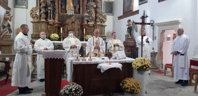 Na sam spomendan sv. Leonarda, 6. studenog, svečanu koncelebriranu svetu Misu u 11 sati predvodio je župnik župe Krista Kralja iz Domaslovca, o. Anto Pavlović, uz dekana Samoborsko-okićkog dekanata preč. Ivicu Cika, dekana Bjelovarskog dekanata preč. Krešimira Žinića, prof.dr.sc. Alojza Ćubelića, dominikanca, samoborskog kapelana vlč. Marka Nimca te domaćeg župnika, vlč. Darka Banfića. Predvoditelj misnoga slavlja, o. Anto, kroz zanimljivu priču podsjetio nas je na činjenicu da nikada ne zaboravimo da Bog uvijek sve okreće na dobro onima koji ga ljube. Priča u kratko ide ovako: bio jednom jedan kralj koji je sve svoje nade polagao samo u svoju moć, bogatstvo i slavu, a imao je slugu koji je bio skroman, ponizan i bogobojazan, te je nastojao oholom kralju prenijeti nešto od svoje vjere, ali ga je ovaj izrugivao, te ga nakon jedne nesreće u lovu u kojoj je izgubio prst dao zatvoriti.