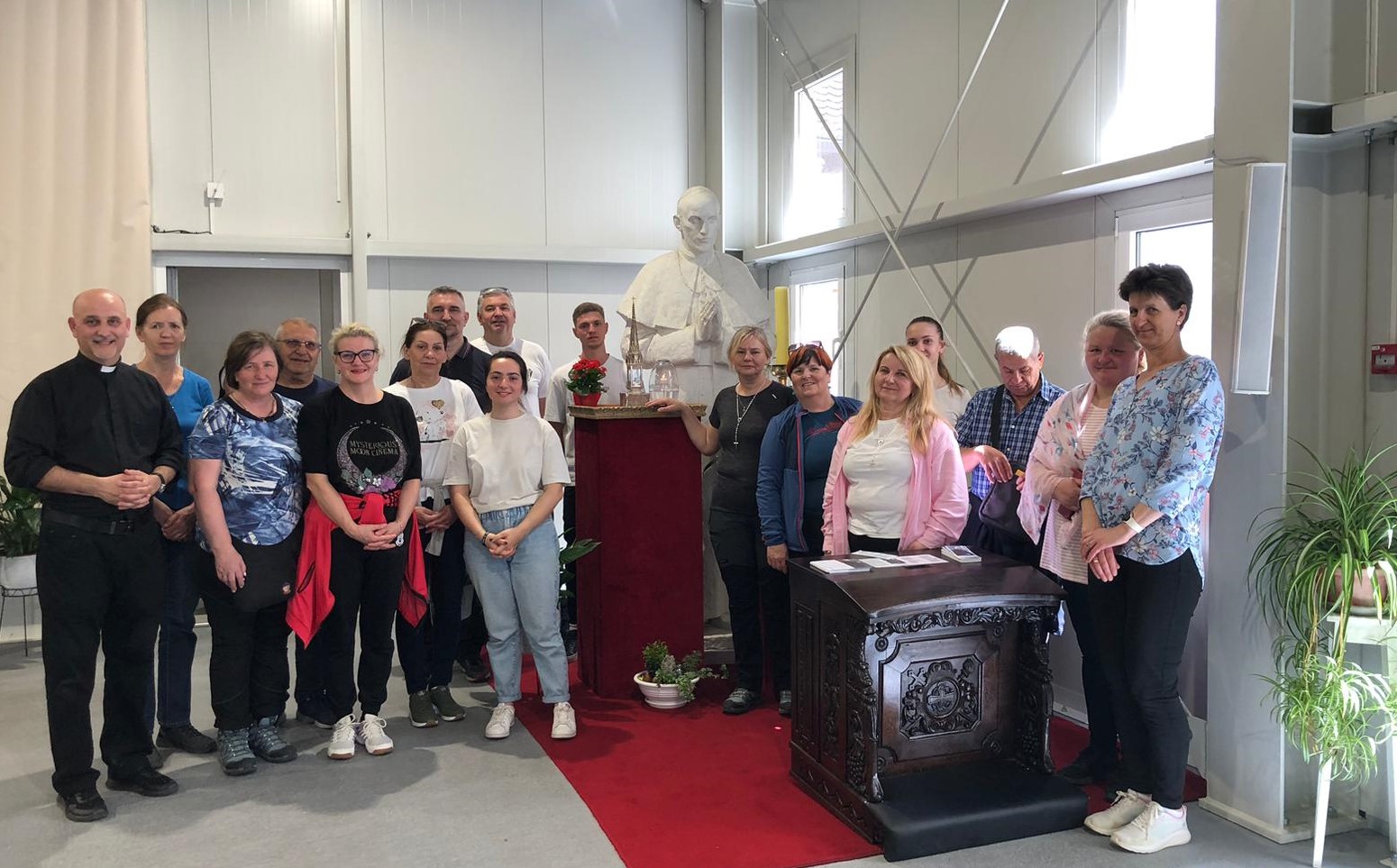 Ispred župne crkve sv. Petra apostola hodočasnički blagoslov prije polaska izmolio je župni vikar Domagoj Koružnjak, ohrabrivši dvadesetak hodočasnika koji su krenuli na svoj put predvođeni trajnim đakonom Ilijom Nikolićem. Hodočasnička staza i ovaj put imala je tri postaje: svetište Gospe Stenjevečke, bogoslužni prostor bl. Ivana Merza u Španskom i bogoslužni prostor bl. Alojzija na zagrebačkom Kaptolu.