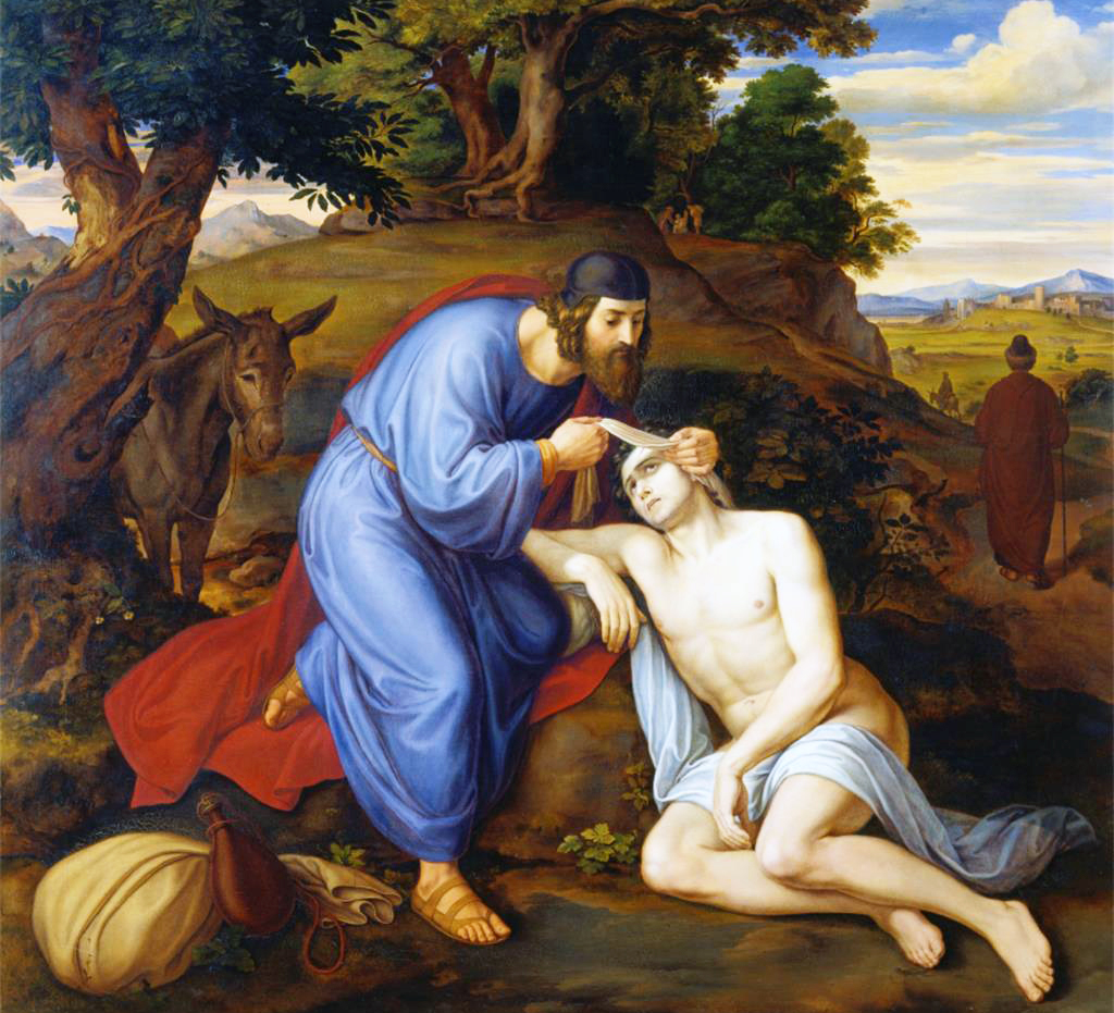 Detalj s naslovnice molitvenog priručnika: Milosrdni Samarijanac, ulje na platnu, 1833., autori: Julius Schnorr von Carolsfeld, Ferdinand Olivier i Friedrich Olivier, sammlung.staedelmuseum.de