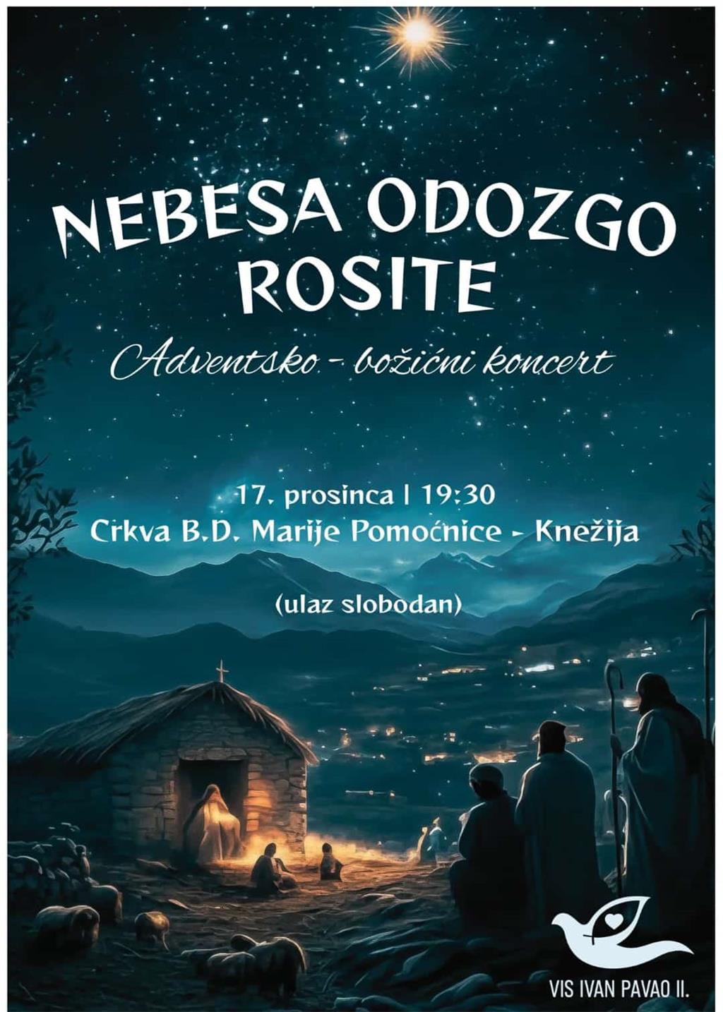 Adventsko-božićni koncert "Nebesa odozgo rosite" održat će se 17. prosinca u župnoj crkvi BDM Pomoćnice na Knežiji s početkom u 19.30 sati.