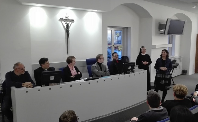 U ime domaćina vjeroučiteljima je dobrodošlicu zaželjela prof. dr. sc. Valentina Mandarić, predstavivši i prisutne predavače, profesore s Katoličkog bogoslovnog fakulteta Sveučilišta u Zagrebu: doc. dr. sc. Tarasa Barščevskog, dr. sc. Anđela Malyja, prof. dr. sc. Ružicu Razum i doc. dr. sc. Denisa Barića te više savjetnike iz Agencije za odgoj i obrazovanje Dalibora Adžića, prof., i mr. sc. Gordanu Barudžija te s. Smilju Čirko, predstojnicu Katehetskog ureda Sisačke biskupije.
