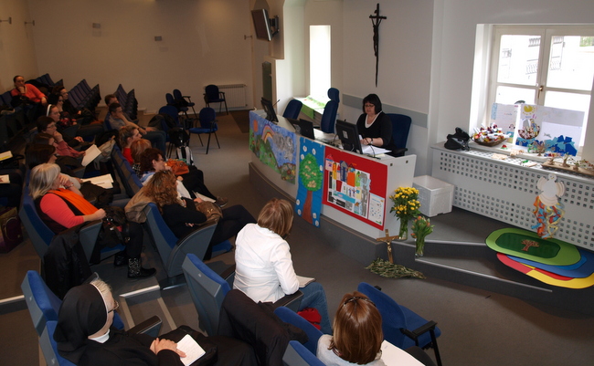 Sedamdesetak odgojiteljica u vjeri okupilo se ujutro 28. ožujka na stručnome skupu u prostorijama Ureda za vjeronauk (Branjugova 1). Organizatorice susreta, u ime Agencije za odgoj i obrazovanje mr. sc. Gordana Barudžija i u ime i Ureda za vjeronauk u školi prof. dr. sc. Valentina Blaženka Mandarić zaželjele su okupljenim odgojiteljicama dobrodošlicu i najavile tijek skupa.