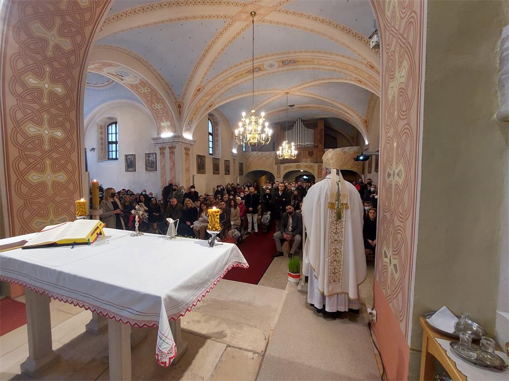 Na početku misnog slavlja biskup Gorski pozdravio je sve okupljene te prenio pozdrave i božićne čestitke zagrebačkog nadbiskupa kardinala Josipa Bozanića. Također, istaknuo je simboliku ovog događaja jer su se tri katoličke obitelji okupile na blagdan Svete Obitelji kako bi krstile svoju djecu.