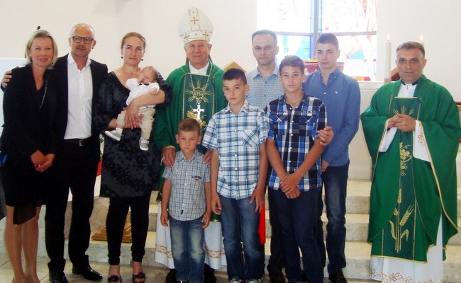 Pomoćni zagrebački biskup mons. Mijo Gorski krstio je u nedjelju 21. lipnja u župi sv. Ivana Krstitelja - Ivanja Reka peto dijete u obitelji Mirjane i Stipe Pandža, malenog Vitu.