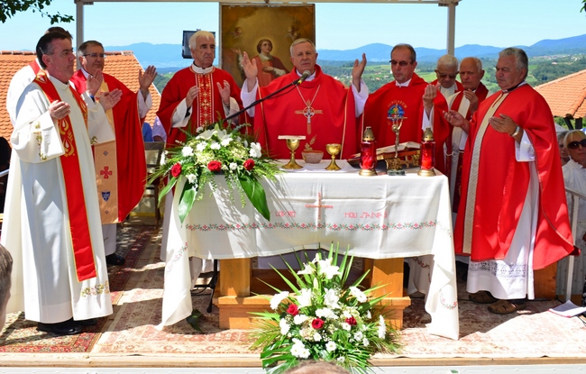 O tome je predvoditelj svete mise, biskup Mijo Gorski, govorio žarom pravog oca poučavatelja rekavši da se po tom ognju Duha Božjega mi kršćani jačamo, čistimo od naših slabosti, a Isus nam oprašta grijehe. Naglasio je da tamo gdje je oganj Duha Božjega na djelu nastaje novi život, nova snaga, nešto poput zaljubljenosti i da tu djeluje ljubav koja je spremna na svako trpljenje, na smrt poput ljubavi za domovinu i za bližnjega. Kada smo zahvaćeni takvom ljubavi, djelujemo i ne odgađamo za sutra, na djelu su novi kriteriji – kriteriji ljubavi, tada imamo hrabrosti za život. Podsjetio nas je propovjednik da danas u svijetu većina ne misli tako, istina i pravednost nisu uvijek na strani slabih, ali upravo tu, kao i u vrijeme svetog Lovre, potrebno je poput njega svjedočiti za istinu i pravednost i o tome uvijek govoriti. Biskup je naglasio da je sveti Lovro to mogao, jer je bio zahvaćen ognjem Božje ljubavi koja mu je dala spremnost i hrabrost da smjelo ide u smrt za Krista i nama za primjer. Podsjetio je mlade krizmanike koji će primiti sakramentom svete Potvrde Duha hrabrosti koji će ih jačati, da ostani vjerni Kristu, da ne trče iz veze u vezu, već da budu spremni sklopiti kršćanski brak i prihvatiti život, a ne postati mladi umirovljenici od 24 godina kako je papa Franjo opomenuo mlade u Krakovu.