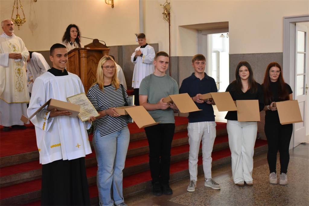 Pred kraj misnog slavlja preč. Lukić izmolio je prigodnu blagoslovnu molitvu za početak nove školske i vjeronaučne godine, a potom je uslijedila kratka svečanost dodjele priznanja pod nazivom “Srce NKG-a - Anamarija Carević” koje Gimnazija dodjeljuje prema nominacijama učenika za svjedočenje življenja različitih vrlina učenicima škole koji donose pozitivne promjene i stvaraju nove vrijednosti, grade odnose povjerenja, stvaraju pozitivnu i prijateljsku atmosferu, daju kreativna rješenja, predano pristupaju radnim zadacima, rado pomažu, pokazuju izvrsnost u svemu što rade i sl. Nagrade za proteklu školsku godinu podijelio je p. Bilić sljedećim učenicima: Rafaelu Schlosseru, Noi Barišiću, Bogdani Budja, Roberti Cvitković, Miji Kamenjarin i Ivanu Letici.