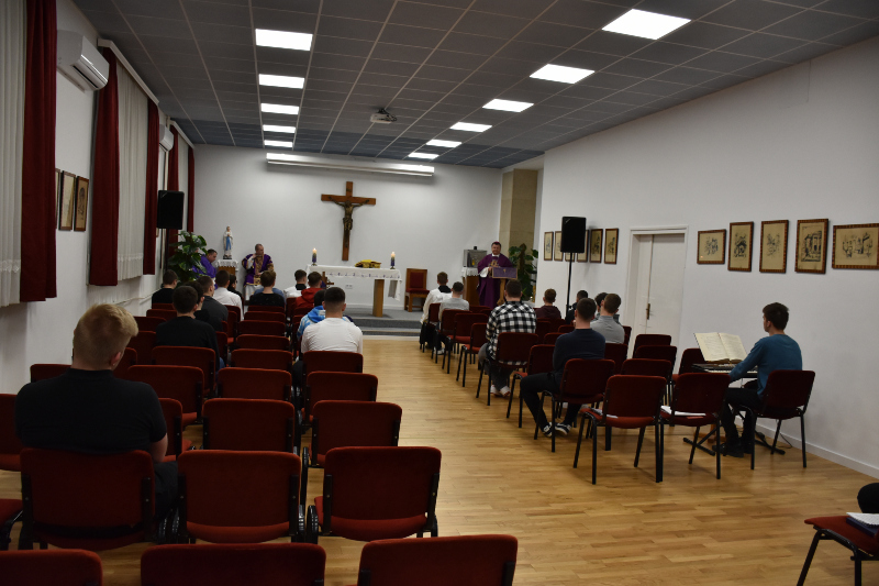 Biskup Huzjak je pozdravio nazočne svećenike, đakona, sjemeništarce i prisutne dječake pristigle na ovomjesečni „Vikend u sjemeništu“ ističući da su se okupili kao živa zajednica Crkve koja slijedi Isusa Krista. Spomenuo je zatim kako se nalazimo na početku korizmenog vremena „u kojem nas Crkva poziva da iznova osjetimo da smo od Boga voljeni“. Potaknuo je okupljene da na temelju izmoljene pobožnosti križnog puta uvijek iznova zahvaljuju Bogu za navedenu istinu, raduju se što je tako i jedni druge promatraju i prihvaćaju kao voljena Božja bića.