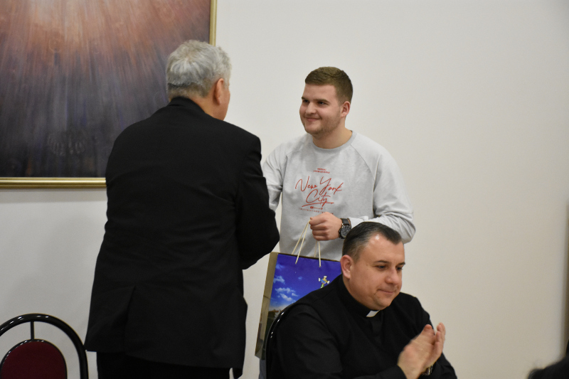 Biskupu Košiću na dolasku su zahvalili sjemeništarci uz prigodni govor generalnog duktora te mu u ime njihove zajednice darovali skromni poklon.
