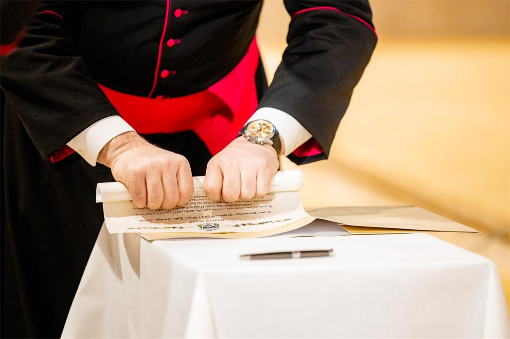 Tijekom svečanosti pročitana je i potpisana povelja o blagoslovu koja je potom položena u unutrašnjost vrata s imenima svih dobročinitelja. Na poziv rektora svetišta odazvao se čak 1381 donator. Kako je rektor istaknuo tijekom svečanosti, imena donatora bit će skrivena ljudskom pogledu, ali poznata Bogu "koji vidi u skrovitosti i uzvraća u skrovitosti."