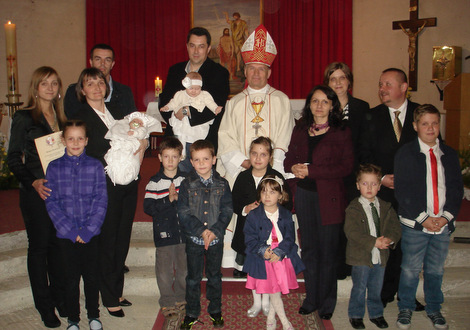 Biskup Pozaić poklonio je obitelji Horvat za peto dijete u ime zagrebačkog nadbiskupa kardinala Josipa Bozanića prigodni dar slavne hrvatske kune s likom nerođenog djeteta iz 2000 godine. Svečano euharistijsko slavlje obogatili su svojom pjesmom i sviranjem zbor mladih "Stijene"