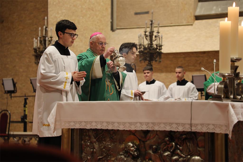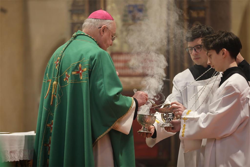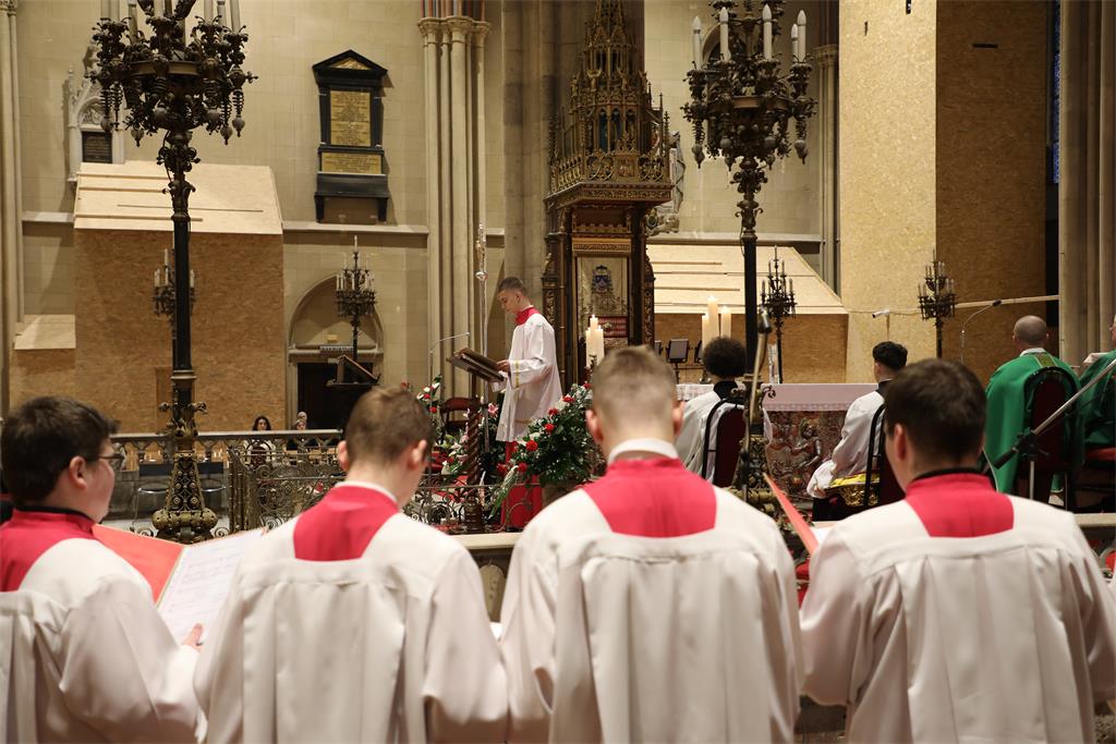 Pomoćni biskup zagrebački mons. Vlado Razum, u zajedništvu s rektorom Međubiskupijskog sjemeništa na Šalati preč. Matijom Pavlakovićem i sjemenišnim duhovnikom vlč. Matkom Filipovićem, predvodio je misno slavlje u Zagrebačkoj katedrali na petu nedjelju kroz godinu 8. veljače 2026.