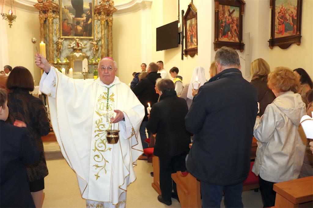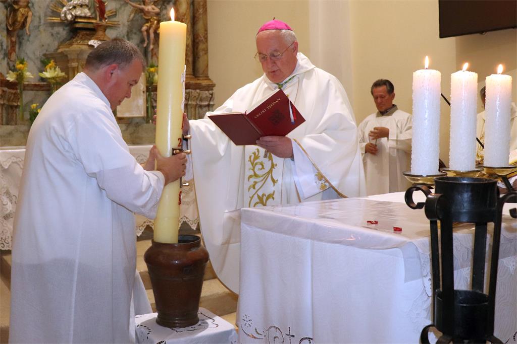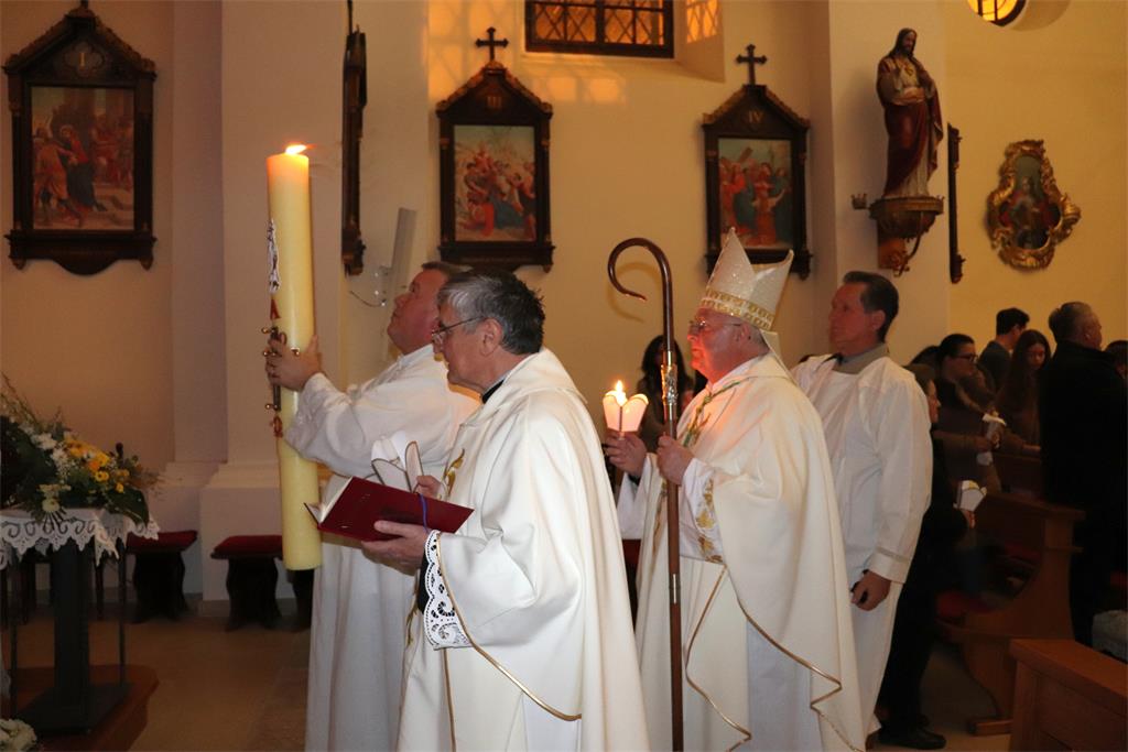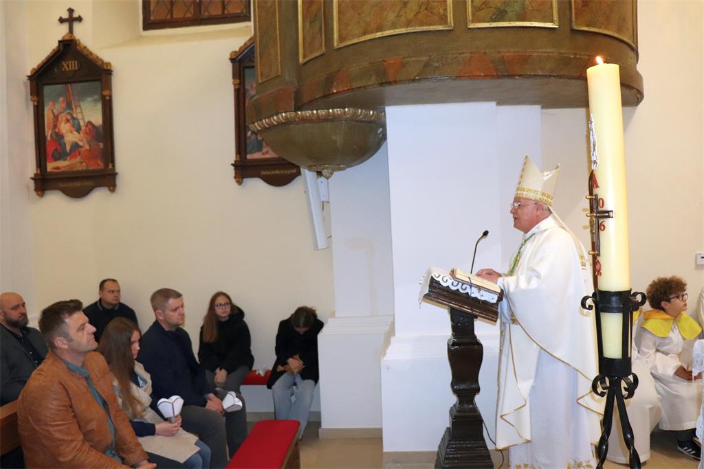 U propovijedi, govoreći o važnosti Vazmenog bdjenja, biskup Razum je istaknuo da u najsvetijoj noći „doživljavamo dramu Kristove pobjede i poziv na obnovu života u vjeri… Ovo slavlje uskrsnuća možemo doživjeti poput drame u četiri čina, koji prate četiri simbola u koje se u ovom slavlju uživljujemo: svjetlo, riječ, voda i kruh. U ta četiri simbola otkriva nam se narav Kristove osobe i njegovo djelo, ono čime se očitovao prema nama. Ali u njima se otkriva i ono što želi usaditi u naše živote kao obnovu našega bića i rasta. Ujedno, to je i poziv da ono što je njemu vlastito, što je on živio kao osoba, živimo i mi, te da to po našim životima bude prisutno u svijetu u kojem živimo.“