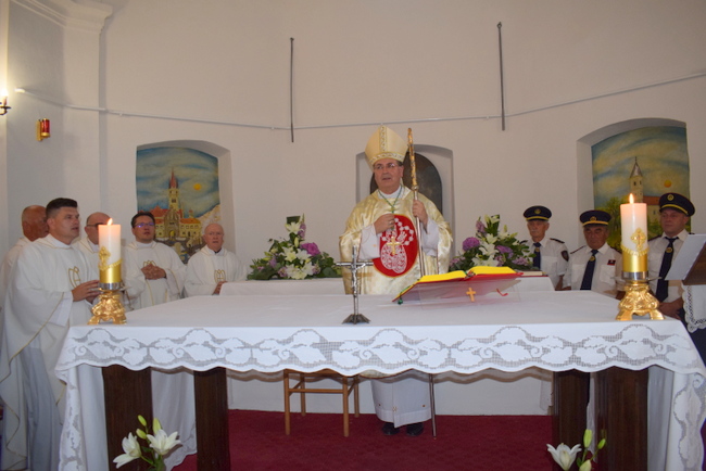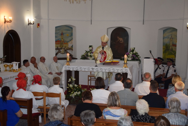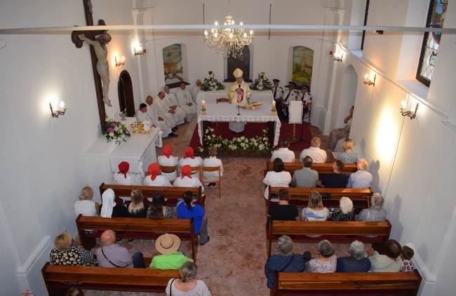 Na početku slavlja biskup Šaško je blagoslovio obnovljenu kapelu nakon čega je uslijedio procesijski ophod oko kapele. Pozdravljajući okupljene, biskup Šaško je u uvodu euharistijskog slavlja čestitao na lijepome i znakovitome djelu obnove koje svjedoči o vjeri, živoj i obnavljanoj iz naraštaja u naraštaj.