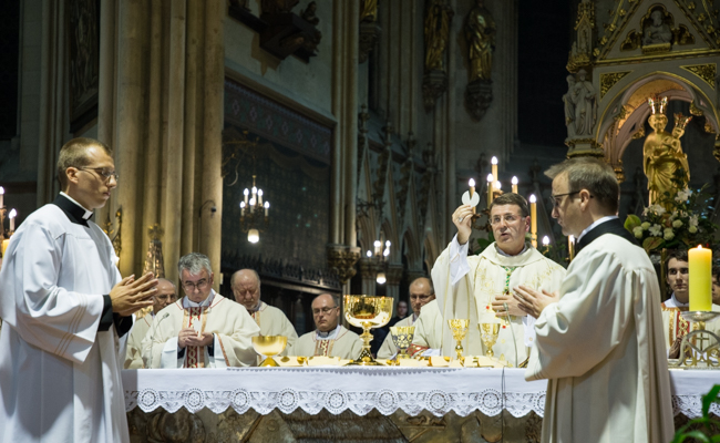 U koncelebraciji euharistijskog slavlja uz dekana Katoličkoga bogoslovnog fakulteta, bio je i dekan Fakulteta filozofije i religijskih znanosti prof. dr. sc. Ivan Koprek SJ te oko trideset svećenika i redovnika.