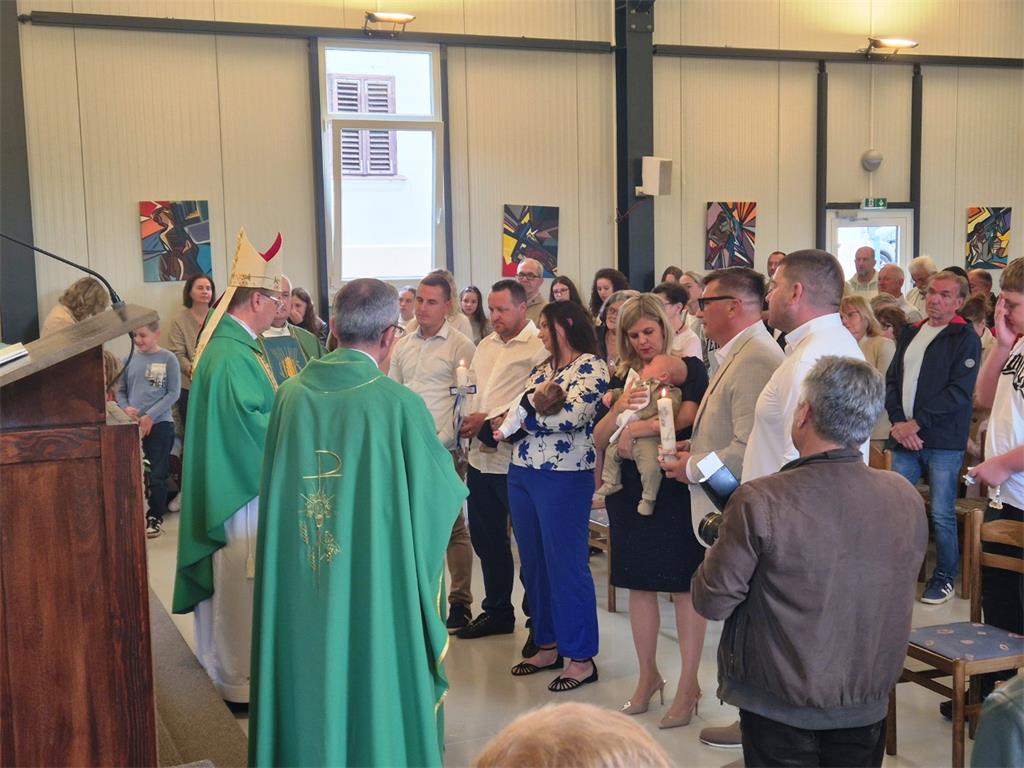 Župnik vlč. Josip Đurbek srdačno je zahvalio biskupu Šašku na dolasku, a biskup je obitelji krštenikā uručio prigodni dar Zagrebačke nadbiskupije.