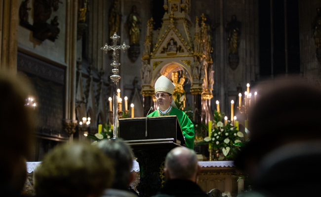 U uvodu euharistijskog slavlja Biskup je okupljene štovatelje blaženog Alojzija Stepinca u zagrebačkoj katedrali pozvao da na trenutak zastanu i zahvale za dar našega Blaženika, s pouzdanjem u njegov zagovor predajući Bogu svoje nakane, donoseći sa sobom bližnje i moleći ga da nas prožme svojim Duhom, da nam oprosti i da nas primi u radost euharistijskoga dara.