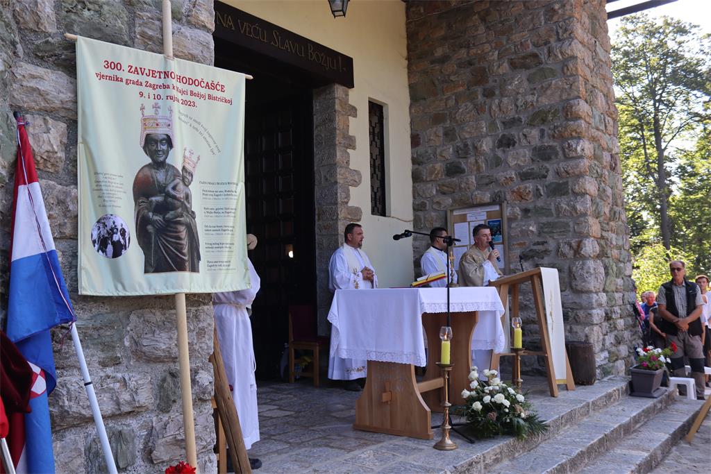 Skupina hodočasnika u subotu, 9. rujna u 5 sati započela je put prema Mariji Bistrici povodom 300. Zavjetnog hodočašća vjernikā grada Zagreba Majci Božjoj Bistričkoj. Hodočašće je započelo blagoslovom u Bogoslužnom prostoru bl. Alojzija Stepinca na zagrebačkom Kaptolu koji je predvodio mons. Ivan Šaško, pomoćni biskup zagrebački. Hodočasnici su tijekom svog puta preko Sljemena sudjelovali na misnom slavlju u sljemenskoj kapeli Majke Božje Sljemenske Kraljice Hrvata koje je predslavio mons. Ivan Šaško u zajedništvu s domaćim župnikom o. Tomislavom Špirancem, SJ; župnikom Župe sv. Blaža vlč. Bornom Puškarićem; župnikom Župe bl. Alojzija Stepinca u Dugoj Resi vlč. Željkom Nestićem i župnikom Župe sv. Ivana Krstitelja, Zagreb - Nova Ves vlč. Ivanom Lastovčićem.
