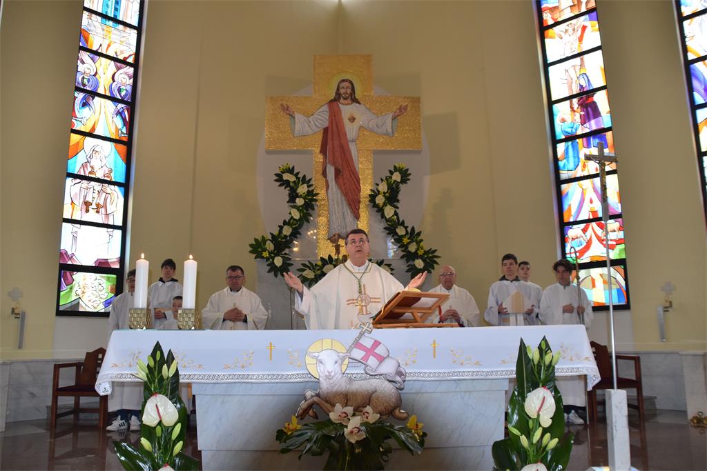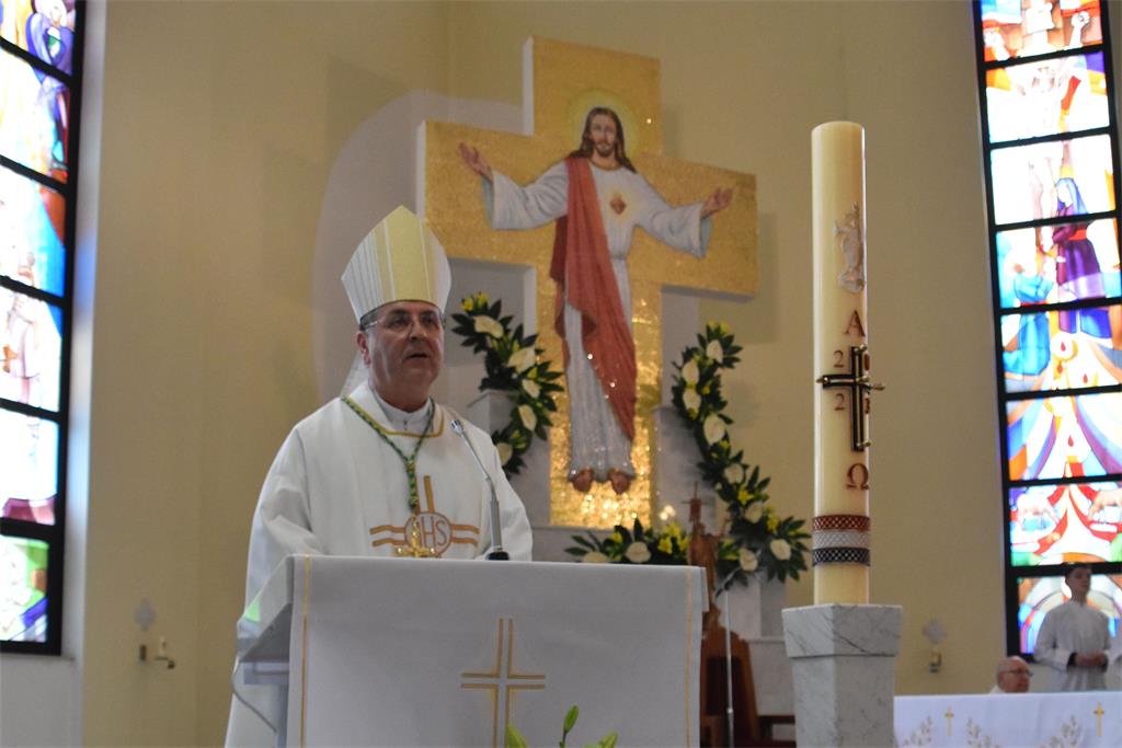 Na početku misnoga slavlja biskup Šaško istaknuo je: "Kada me pitaju kamo idem na Uskrs proslaviti ovu svetkovinu života s Kristom odgovaram: